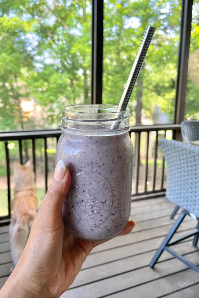 Just add all of your ingredients to the blender and go! Now you have a smoothie packed with antioxidants, vitamins, and a little protein. Time to go play pickleball (because Carrie Sotto-level tennis is a little intimidating and I’m here to have fun lol)!