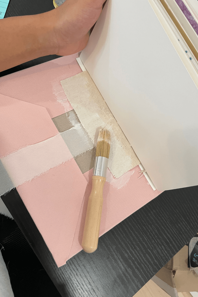 - Finally, on your greeting card stack, glue the fabric canvas onto the inside of the spine.