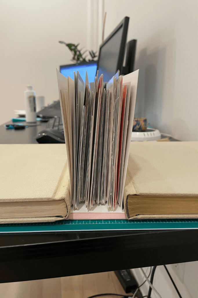 Book binding my bridal shower cards gave me a way to preserve these precious notes and add a new “book” to my space. And there was no better spot than right next to my wedding album ❤