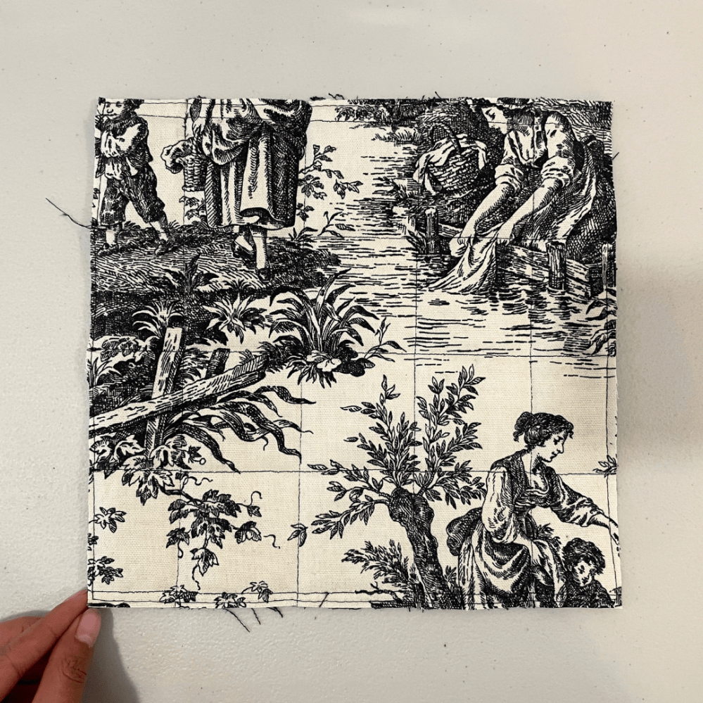 - Cut your fabric and Insul-Bright to 10” x 10” squares
