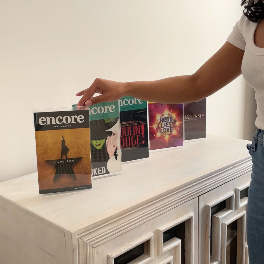 I’m a sucker for musicals and I’ve started collecting playbills from the shows I’ve seen over the past year. The playbills have started to grow in a pile in my office and I wanted to find a way to display them where they could be easily accessible for anyone to view and easy to move around. I was able to accomplish both by using these 5.5” x 8.5” acrylic signs I purchased from Amazon!
