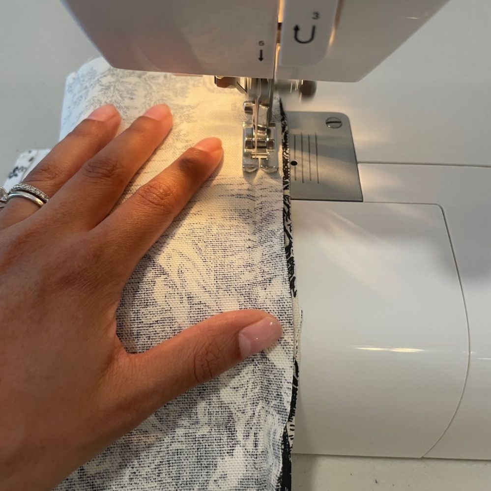 - I was using the fabric from a thrifted curtain, specifically the tap-tops. For the body, I seam ripped all of the tab-tops and sewed them together to create my fabric. Then I ensured the fabric I had matched the length and width listed in steps 1-2.