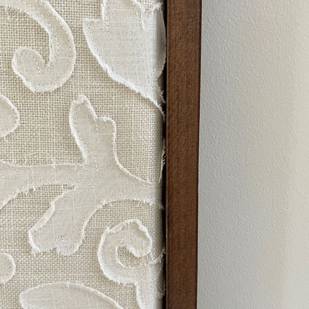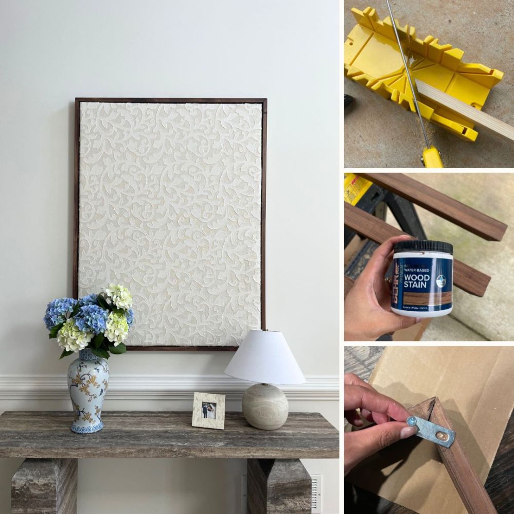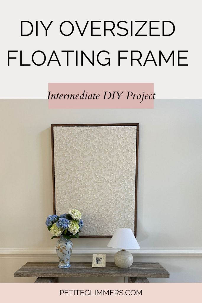 I recently created this Oversized Wall Art with just a 36”x48” canvas and fabric. I thought the piece itself was beautiful, but the space needed a little bit more color. So I challenged myself to create my very own floating frame. These usually retail for $150+ depending on the type you get. It costs $250+ to have it professionally done. This project ended up being around $25 for me to make on my own!