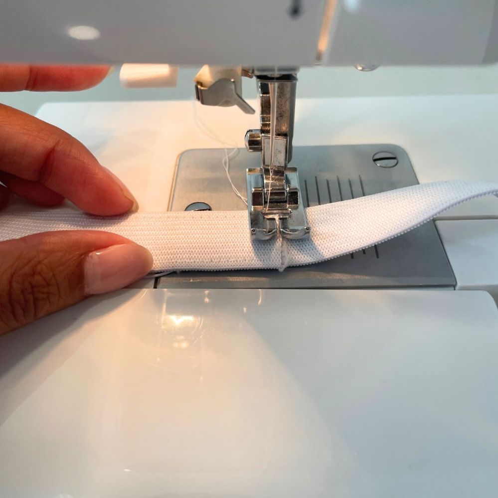 - Sew the elastic ends together overlapping by 1 inch each