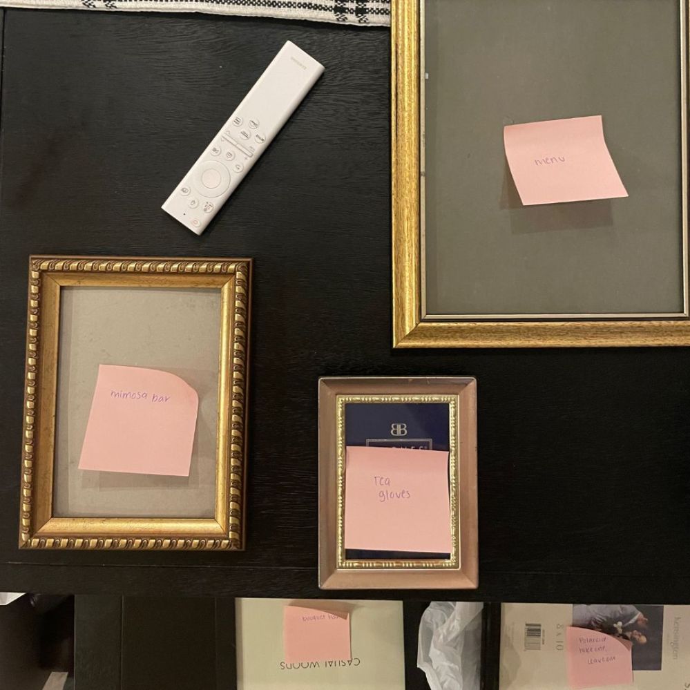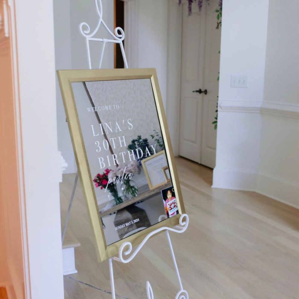 Don’t sleep on the home sections of thrift stores! Home departments that include items like glassware, picture frames, oversized mirrors, etc. These pieces are great options to keep costs low for party decor (or home decor in general).