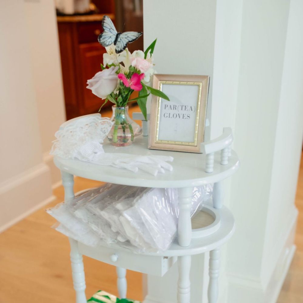 I took weekly trips to a few thrift stores in my area to round up items like candle holders, table settings, bud vases, and picture frames that I could use for my party decorations. Some of the items I grabbed were perfect as-is like the glass vases and ceramic pitchers, but others needed a little spray paint to fit with my garden tea party theme.