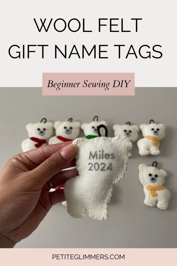 The process is similar to the advent calendar with a few changes. Here is a quick guide on how I created wool felt gift name tags: