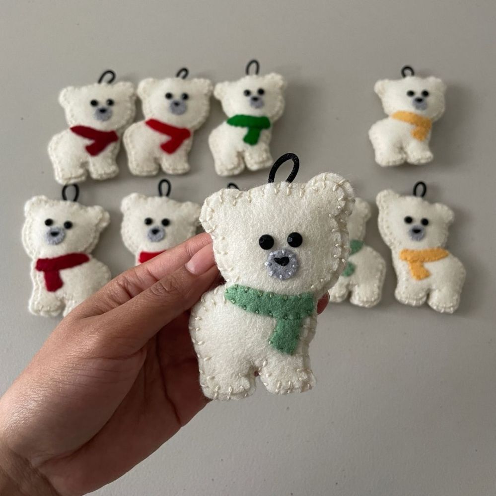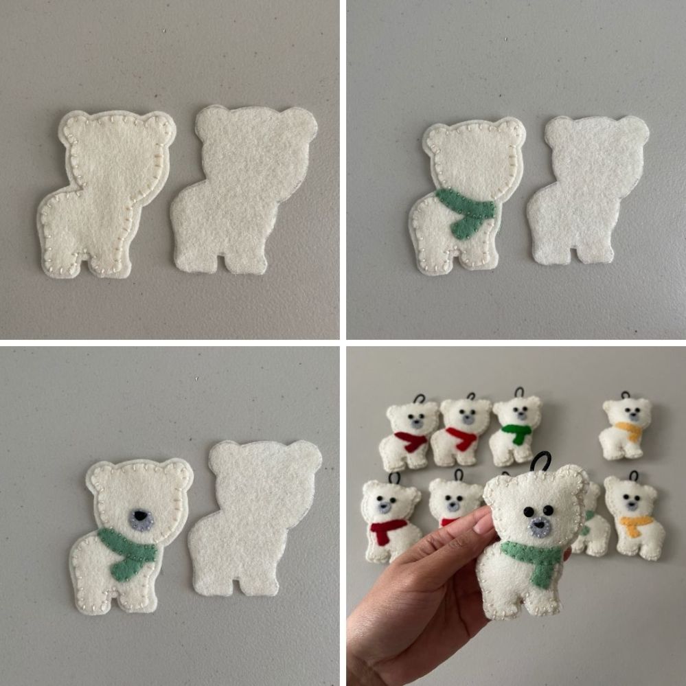 - Assemble front of ornaments using the wool felt, embroidery floss, and other items for details