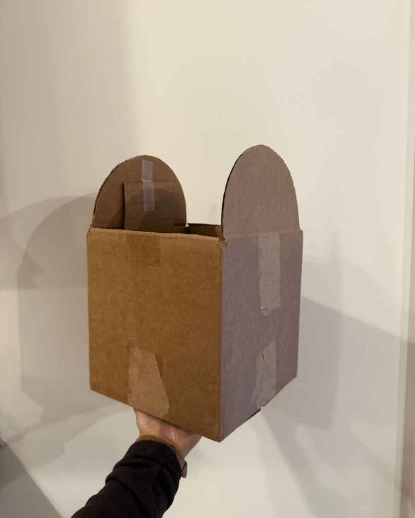 To help the cardboard bend smoothly, I scored the inside of the cardboard, which allowed me to create a gentle curve across the top flaps without cracking or tearing.