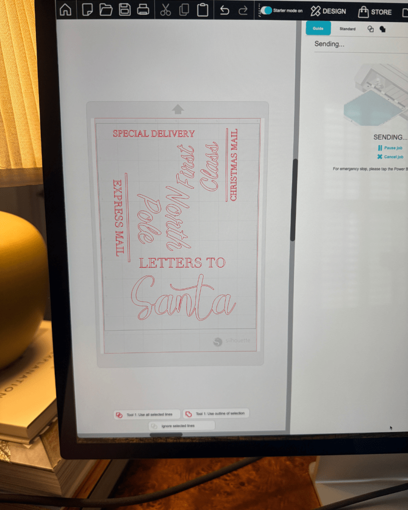 For the finishing touches, I used my Silhouette machine to create custom vinyl stickers with festive phrases for the box. After weeding the designs, I carefully affixed them to the painted surface. This step really elevated the project and made it feel polished and intentional.