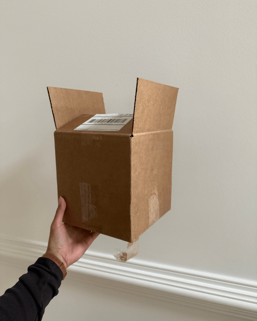 I began by reusing a standard cardboard box—nothing fancy. The first step was to cut off the front and back length flaps, leaving the side flaps intact. These side flaps would eventually become the curved top of the mailbox.