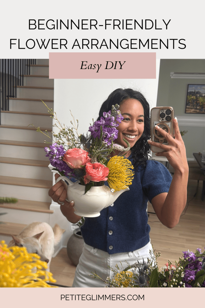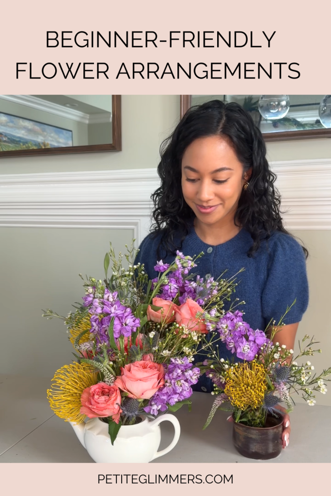 Creating beautiful flower arrangements doesn’t start with a pre-made bouquet, it starts at the flower stand! By choosing individual Trader Joe’s flowers one stem at a time, you can mix colors, textures, and shapes that work perfectly together and stretch one flower run into multiple designs. Using the same flowers, I styled three completely different flower arrangements simply by changing the vessel and floral mechanics. It’s an easy, budget-friendly way to get more out of your flowers and proof that a little intention goes a long way when arranging at home!