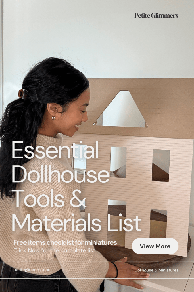 As my dollhouse-making journey continues, this list will grow right along with it. I’ll keep updating it with new tools, materials, and lessons learned as projects evolve and skills expand. If you’re building alongside me, I hope this resource saves you time, sparks ideas, and makes the process feel a little more approachable. Bookmark this page, check back often, and feel free to adapt what works best for your own dollhouse vision! Remember, there’s no one right way to make something miniature and meaningful.