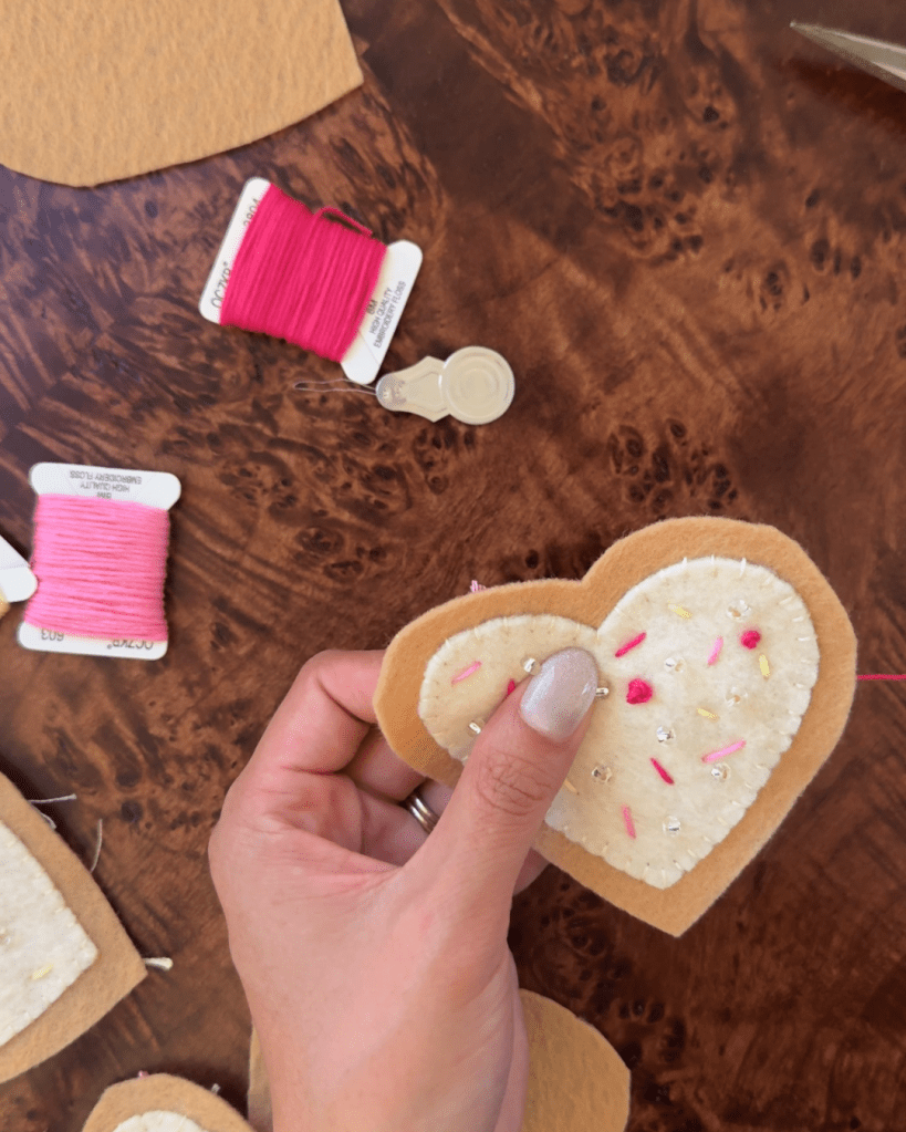 That’s it! You’ve created a sweet felt iced cookie ornament that’s perfect for Valentine’s Day. Hang it on a branch, add it to a seasonal garland, or gift it to someone who appreciates handmade items.